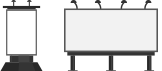 Signs or advertisements displayed outdoors, such as billboards, shop signs, or directional markers, usually designed to withstand weather conditions.