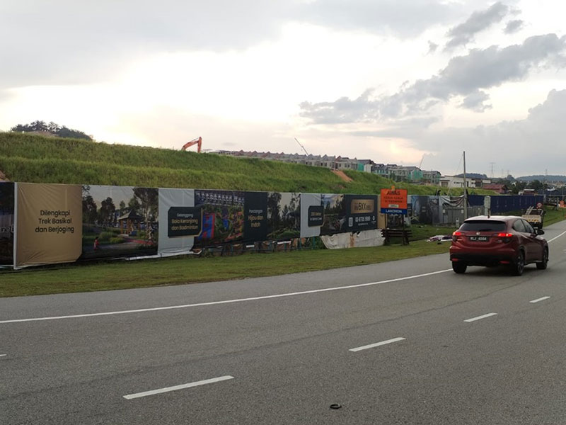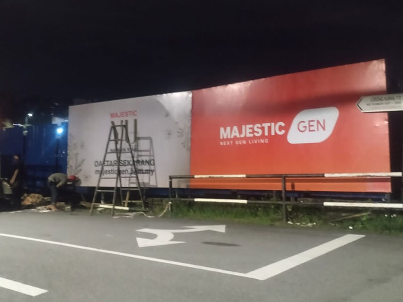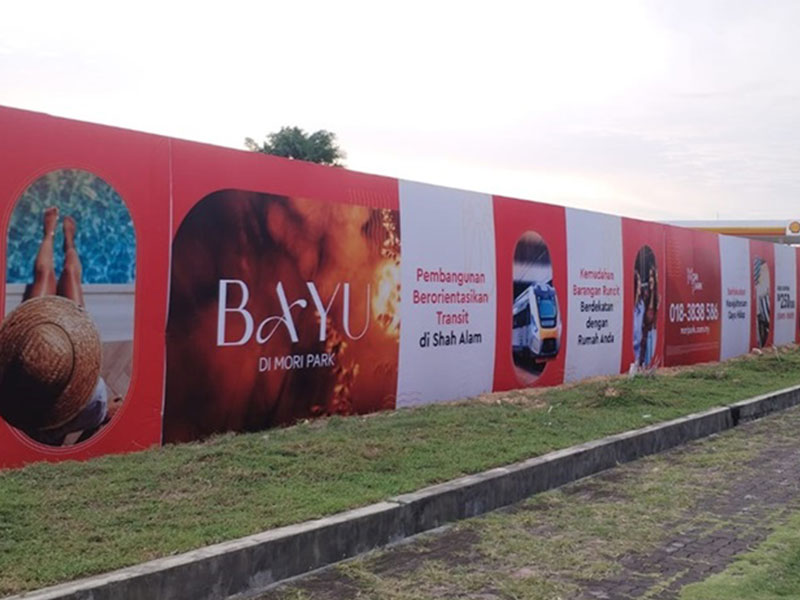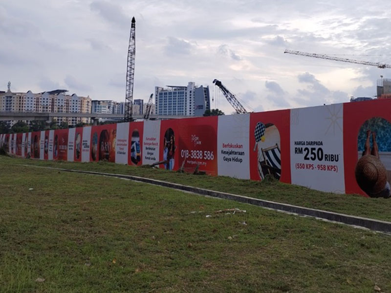A large temporary advertisement board, typically used on construction sites or event locations, serving both to protect the area and display project or brand information.